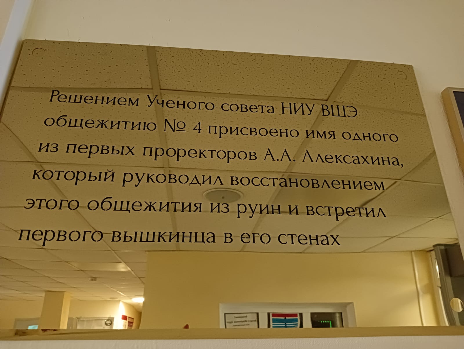 In 2021, by the decision of HSE University Academic Council the dormitory was named after Alexander Aleksakhin.
