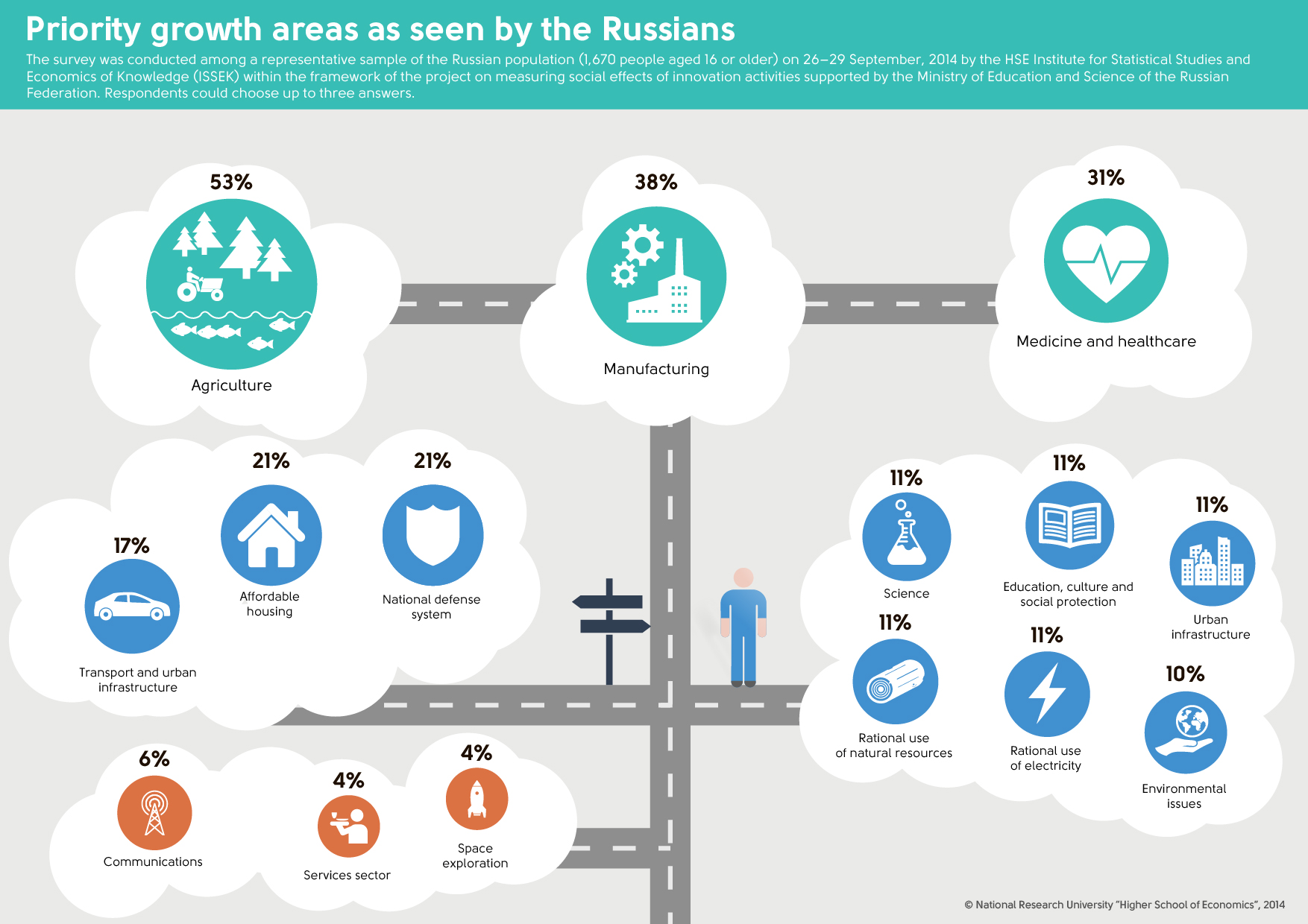 Results of the 2014 survey allowed identification of the decline in public interest in science and technology. Still around 11% of respondents acknowledge science among other the priority growth areas. Such positive attitude to science and technology co-exists with the low level of public engagement in science and technology.