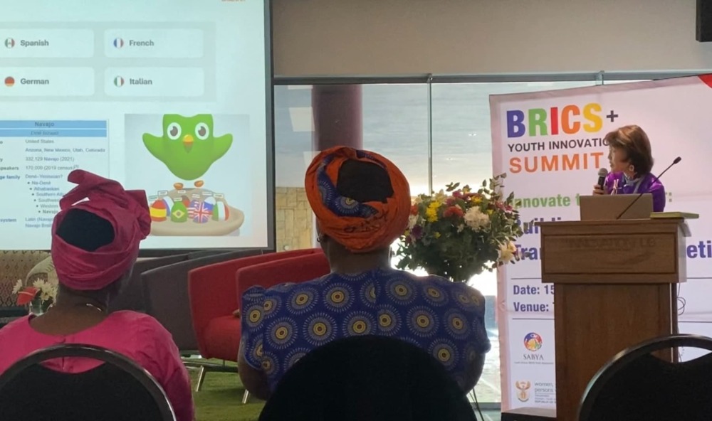 Yana Kozhaga presented the Ekii app, which helps in the study and preservation of rare and endangered minority languages in BRICS countries.