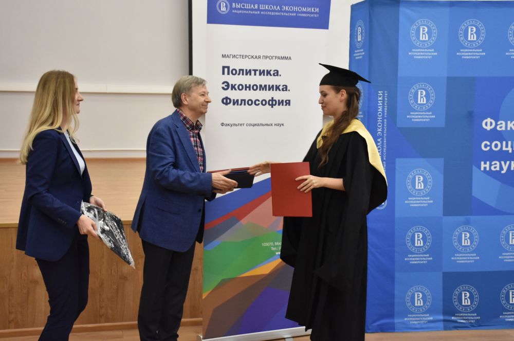 Дипломы получили 12 выпускников программы «Политика. Экономика. Философия», из них четверо — с отличием.
