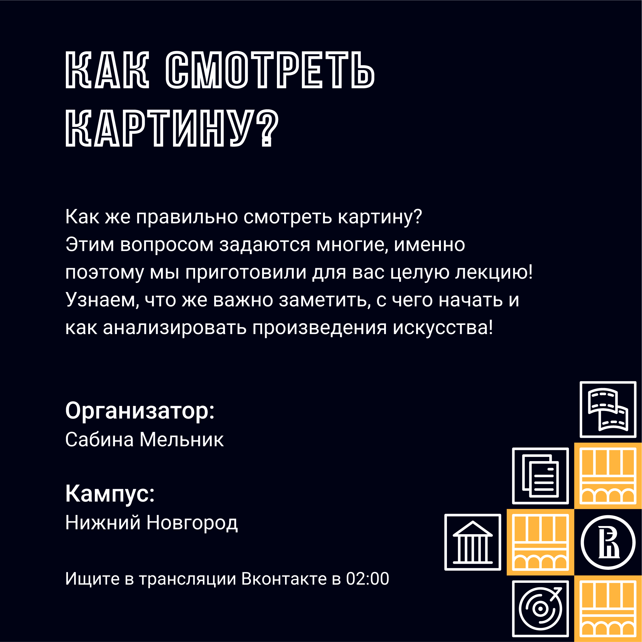 «Ночь искусств» – межкампусный онлайн-фестиваль НИУ ВШЭ о культуре и искусстве разных стран. Организаторы из Москвы, Перми, Санкт-Петербурга и Нижнего Новгорода приглашают в онлайн-путешествие по миру. Готовы? Встречаемся 17 июля!