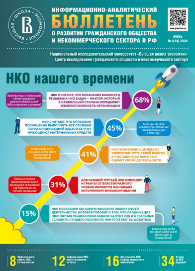 Вышел новый выпуск Бюллетеня НИУ ВШЭ о развитии гражданского общества и некоммерческого сектора. Очередной выпуск бюллетеня Центра исследований гражданского общества и некоммерческого сектора НИУ ВШЭ посвящен 20-летию Мониторинга состояния гражданского общества, который ведет Центр при поддержке Программы фундаментальных исследований НИУ ВШЭ.