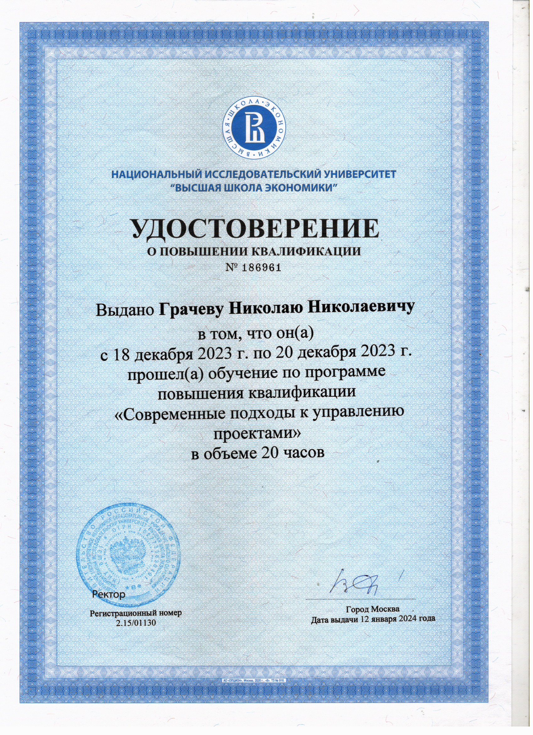 2023 г. "Современные подходы к управлению проектами". Национальный исследовательский университет "Высшая школа экономики". Удостоверение о повышении квалификации 20 часов. /mirror/pubs/share/893243317
