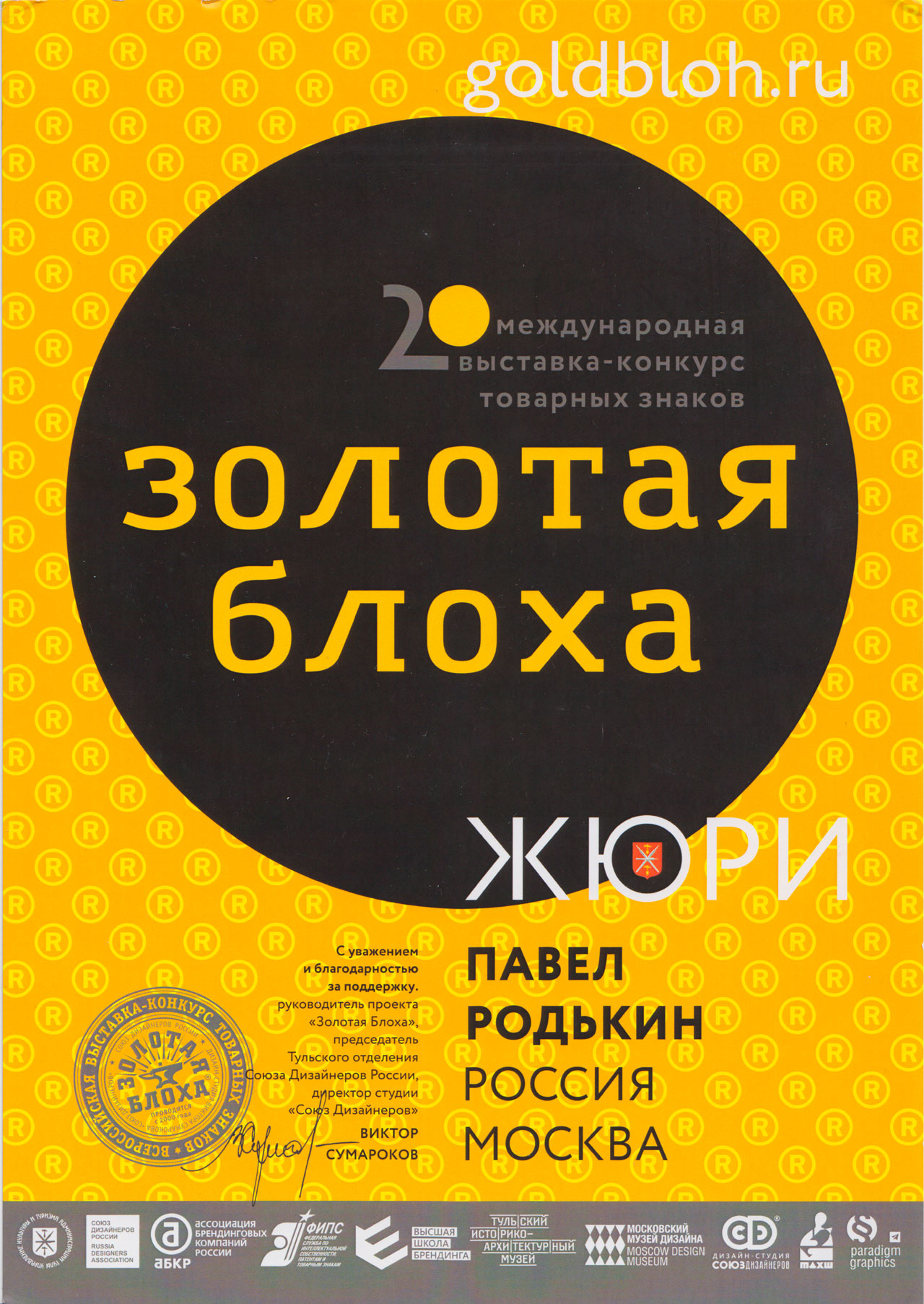 Благодарность за поддержку и работу в составе жюри 20-й Международной выставки-конкурса товарных знаков Золотая блоха