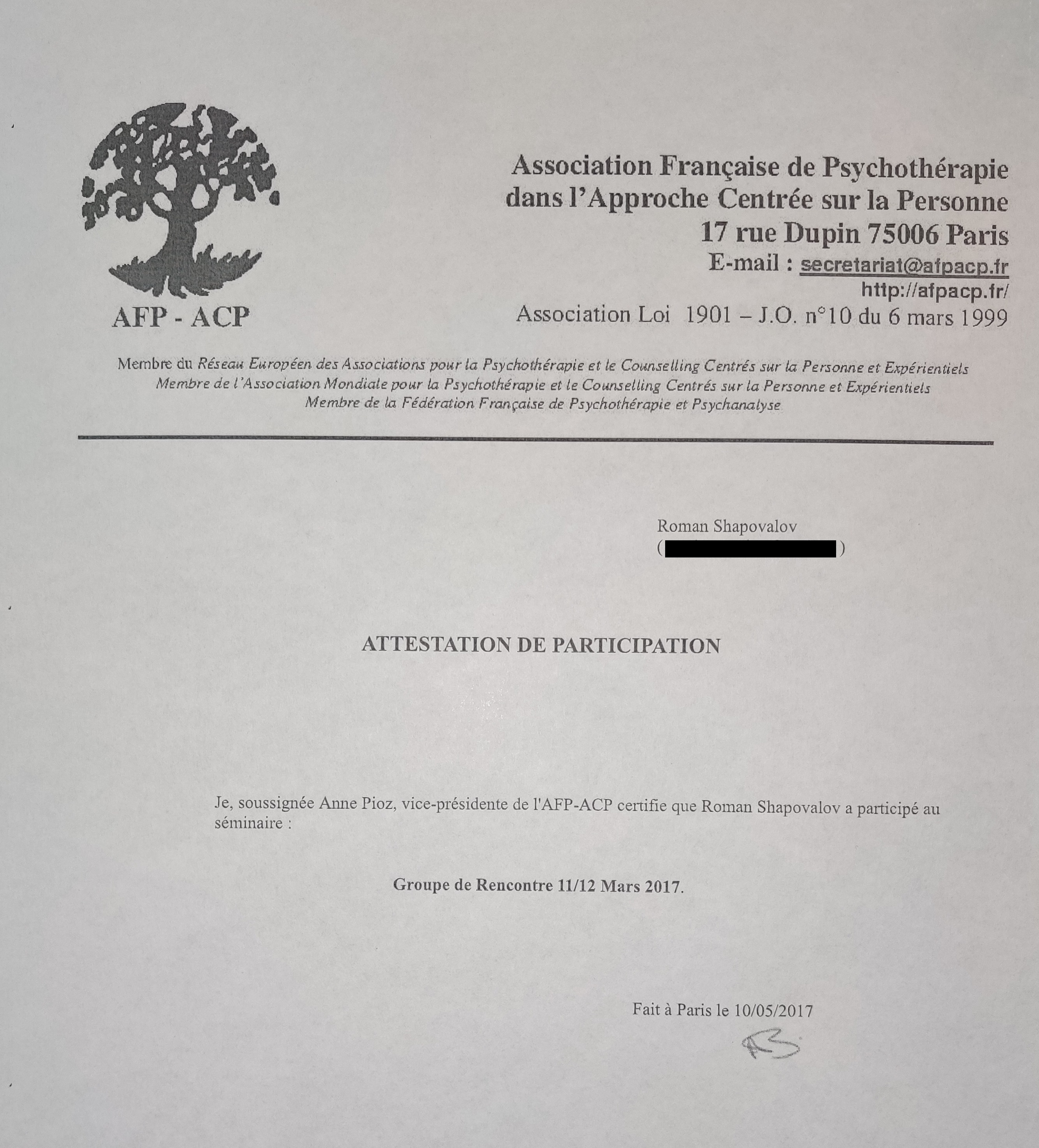- Международная энкаунтер-группа, 16 часов, Париж, Франция, 2017.