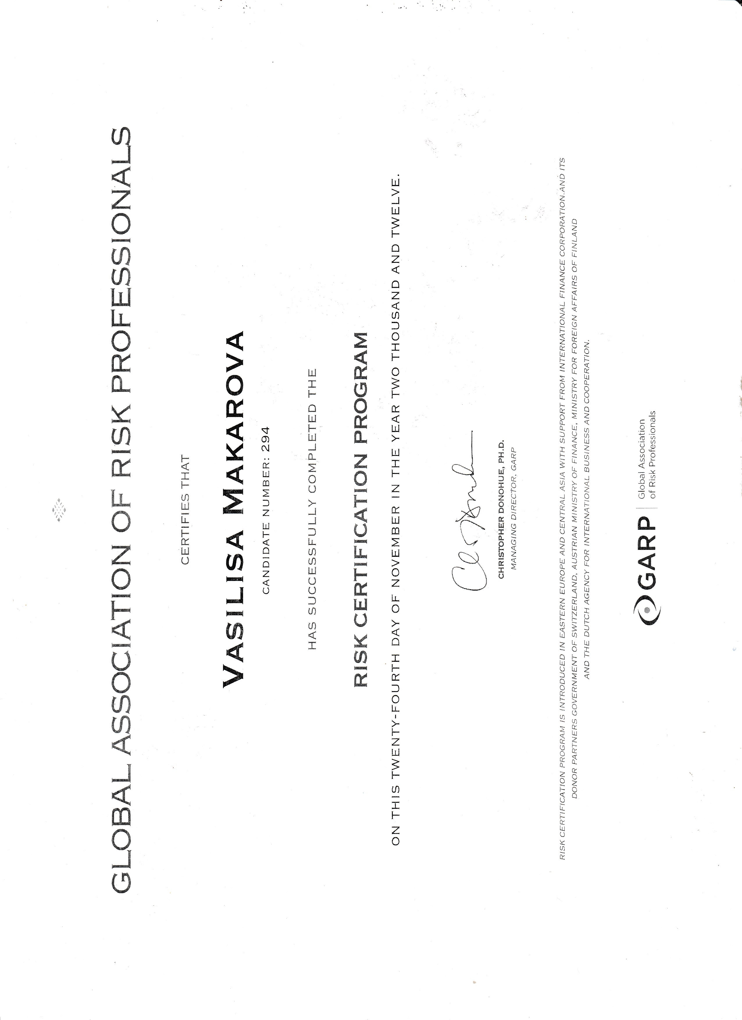 Кандидат экономических наук: Санкт-Петербургский государственный университет экономики и финансов, специальность 08.00.10 «Финансы, денежное обращение и кредит», тема диссертации: Первичное публичное предложение акций в финансировании инвестиций российских компаний2001