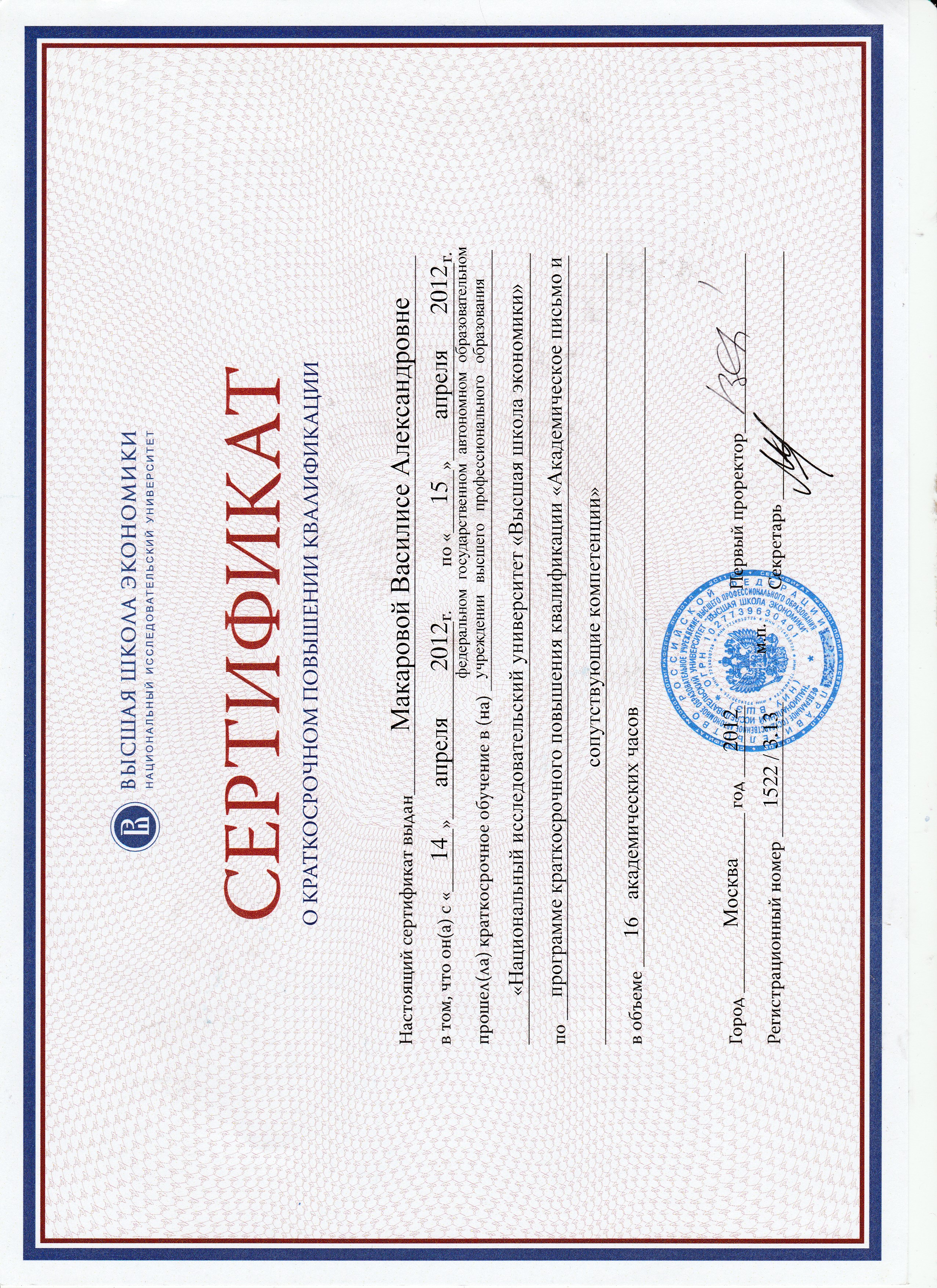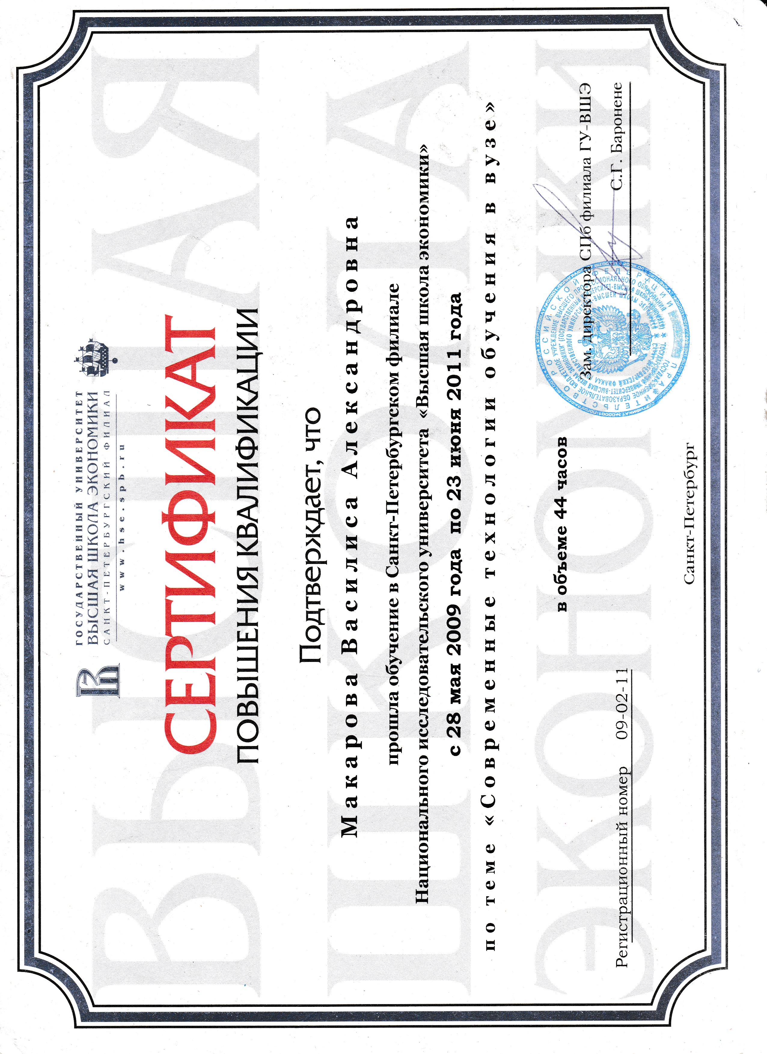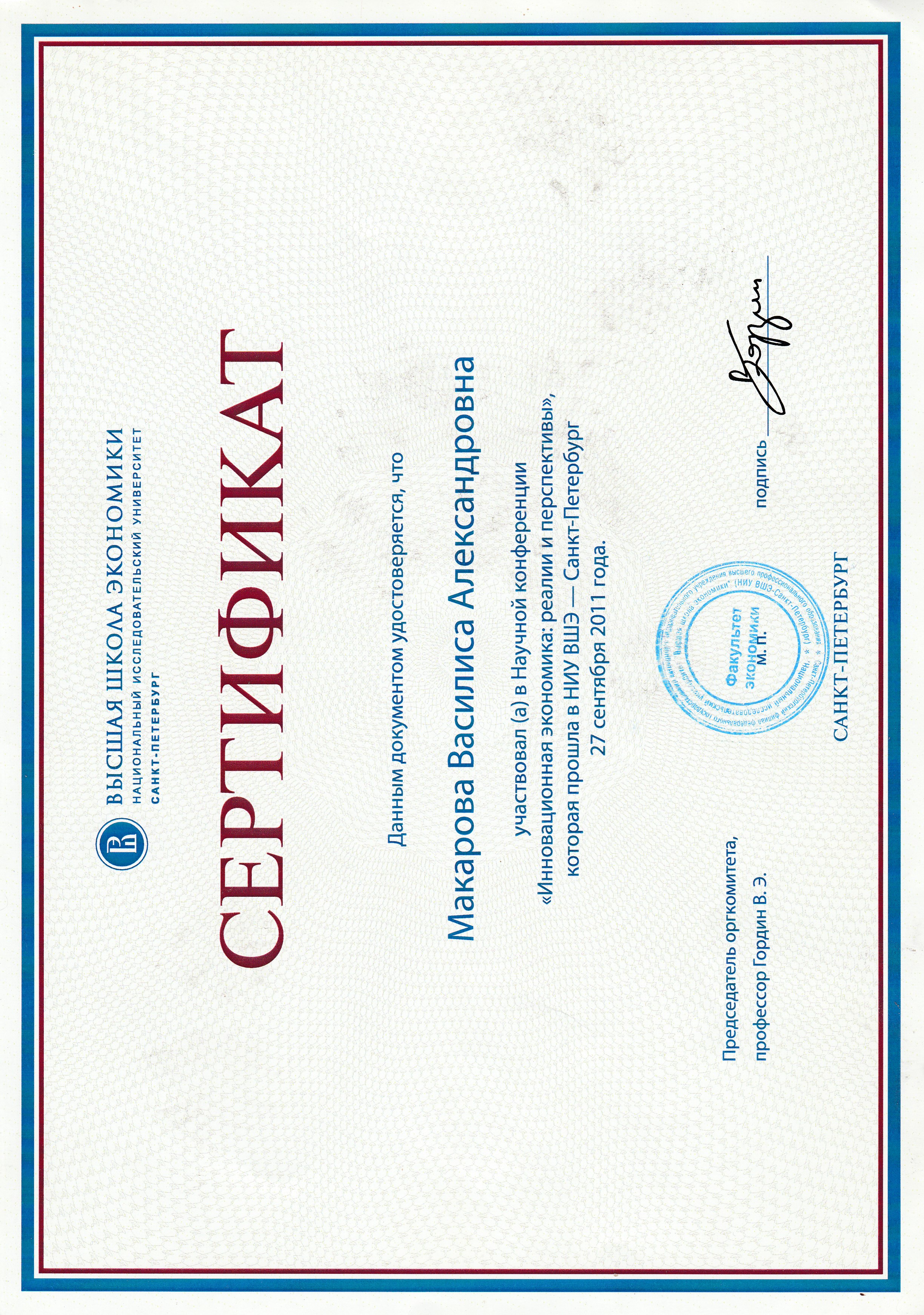 - Благодарность НИУ ВШЭ - Санкт-Петербург (сентябрь 2013)