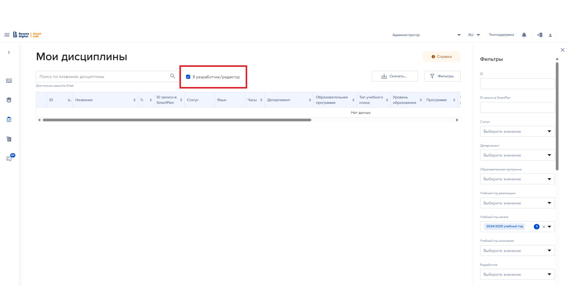Поставив галочку в окошко «Я разработчик/редактор», поисковик выдаст те дисципплины, разработчиком/редактором которых является данный пользователь.