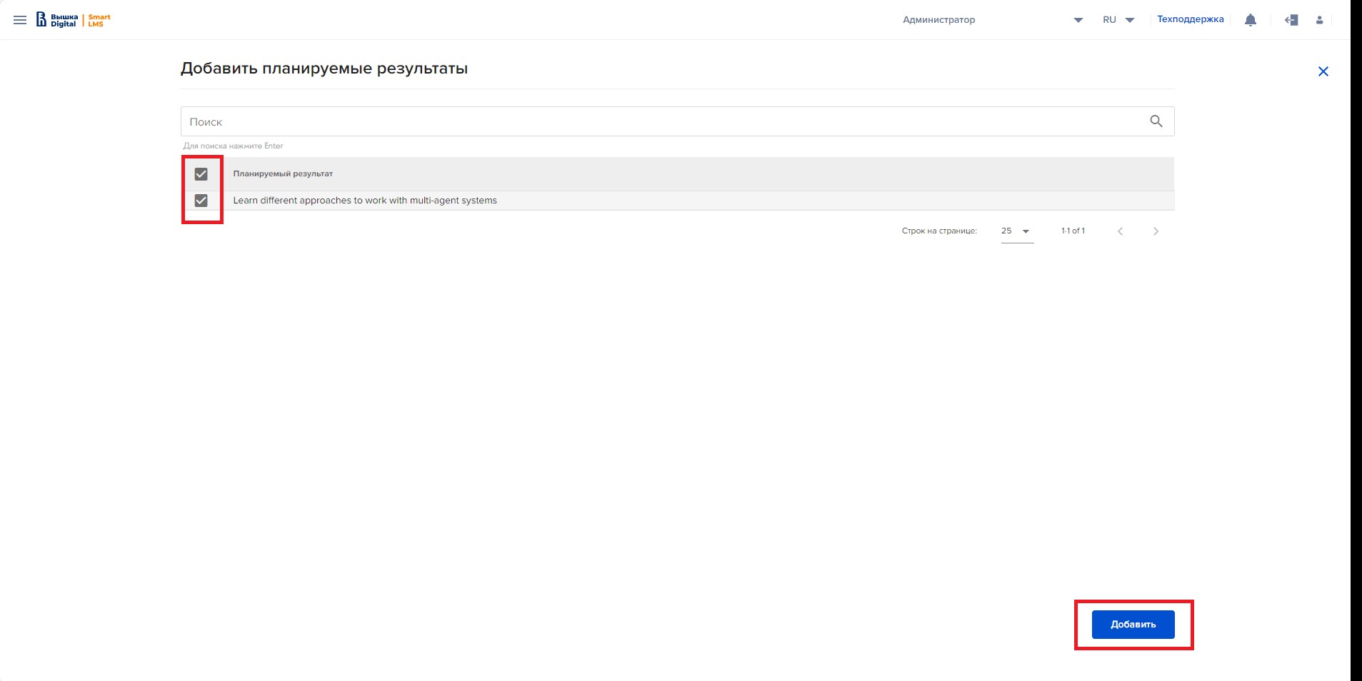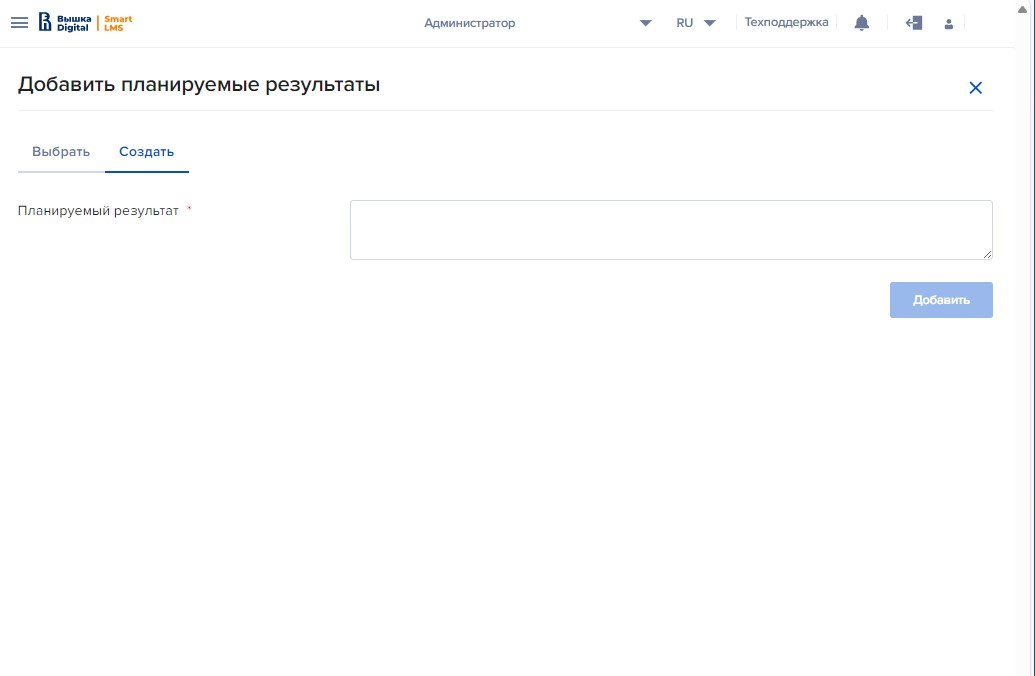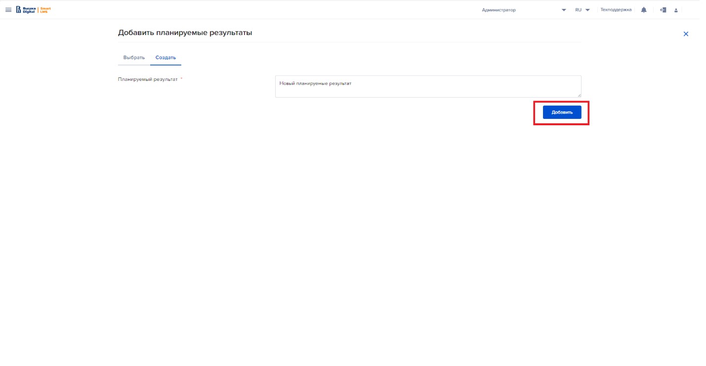 После ввода формулировки планируемого результата нажать на кнопку «Добавить».