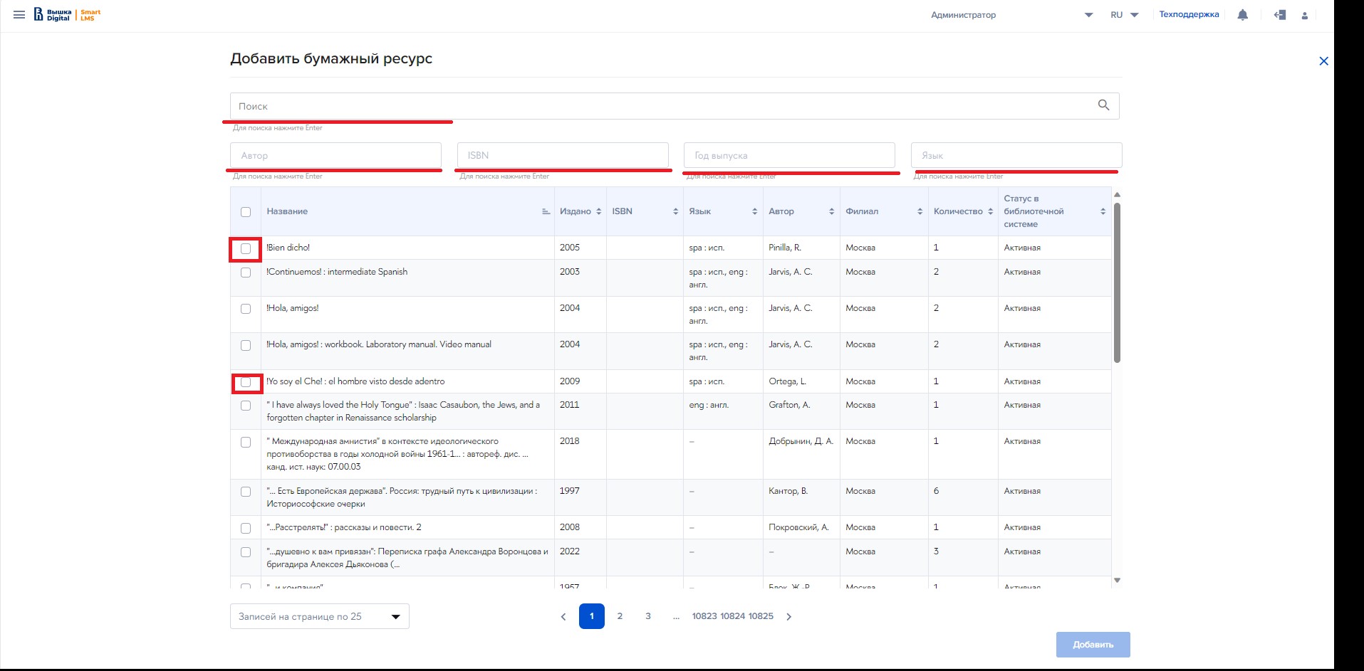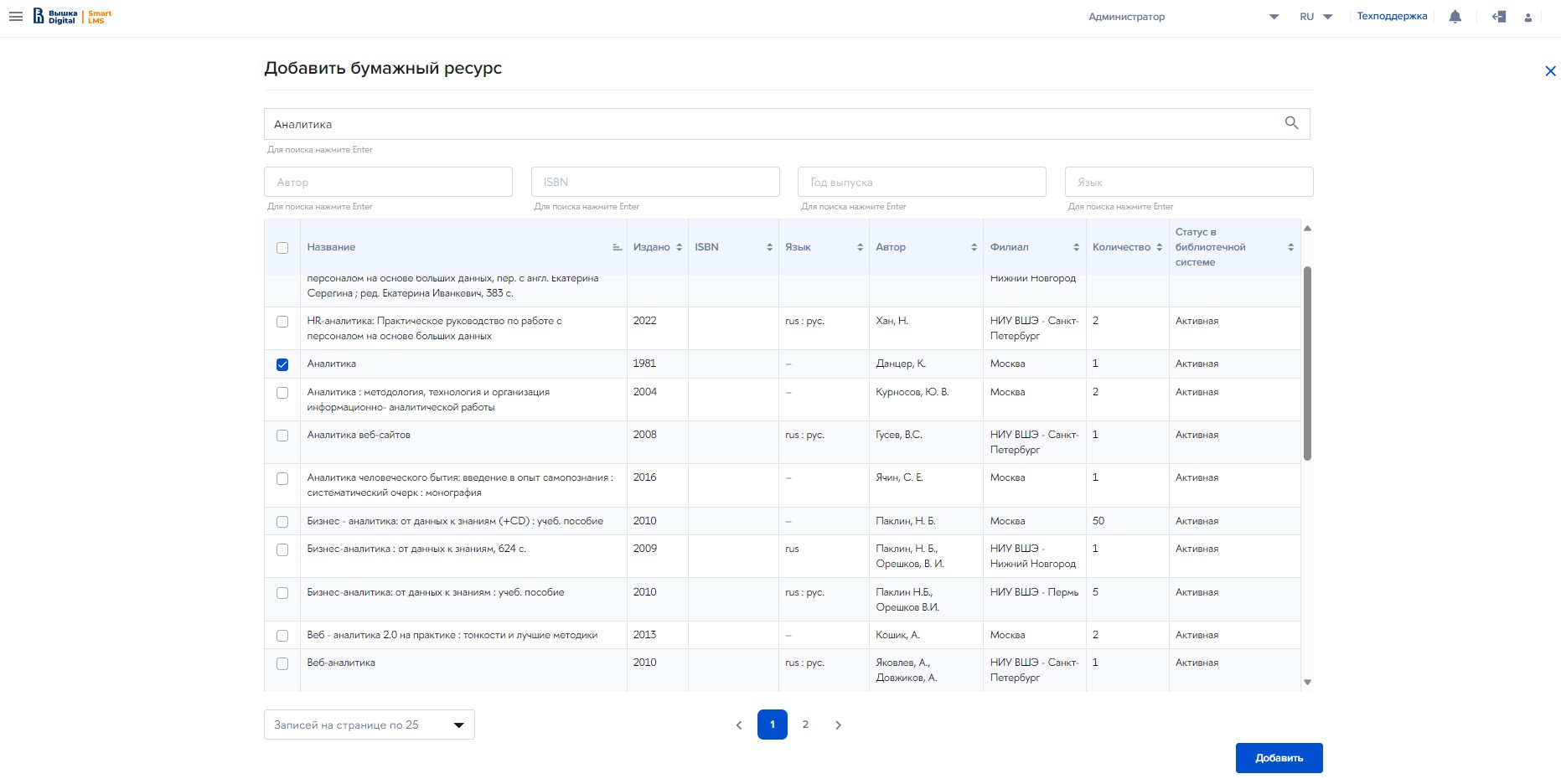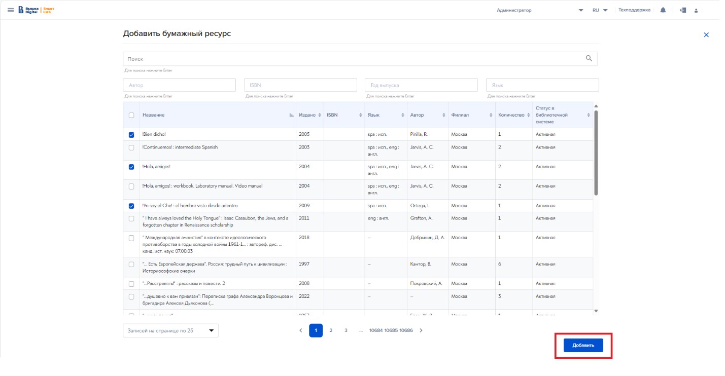 Если источник есть в библиотеке Вышки, его необходимо добавить с помощью галочки.