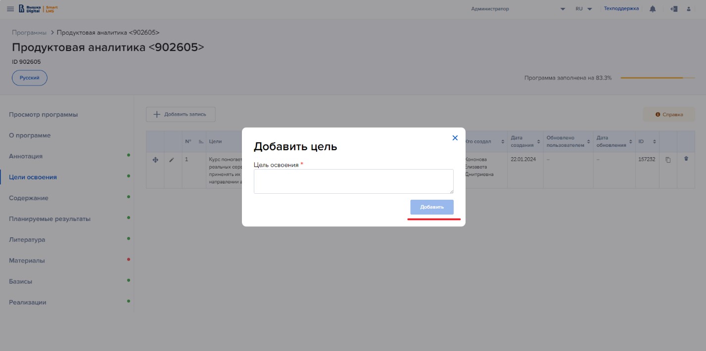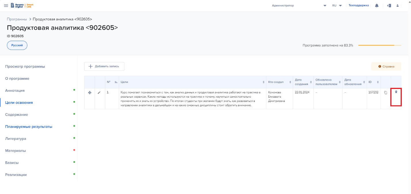 Удалить цель освоения из программы можно с помощью кнопки со значком «корзинки».