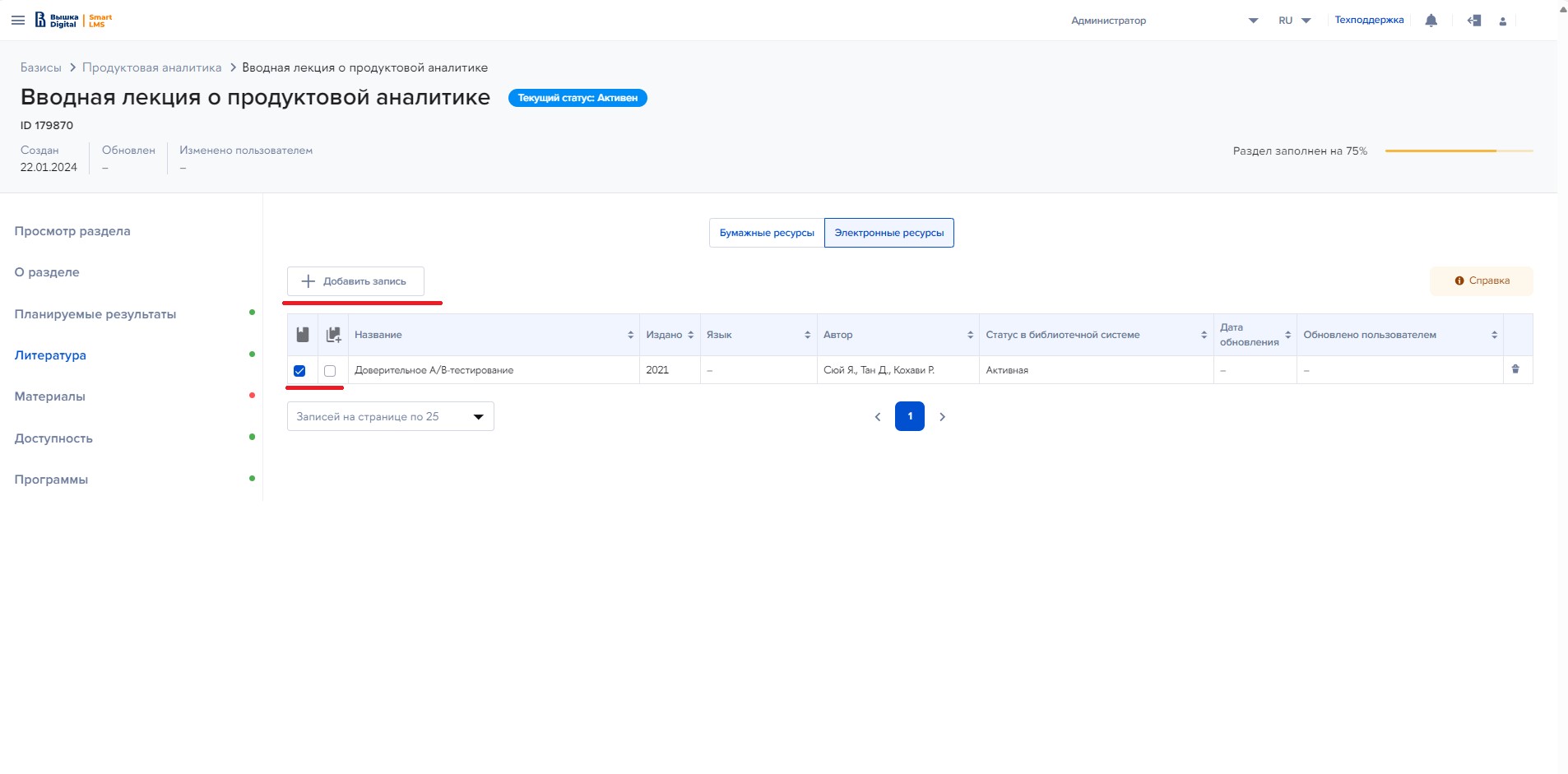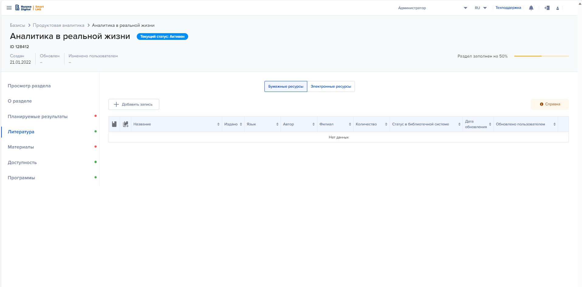 Важно понимать, что вносить изменения в блок «Литература» может только автор раздела базиса.