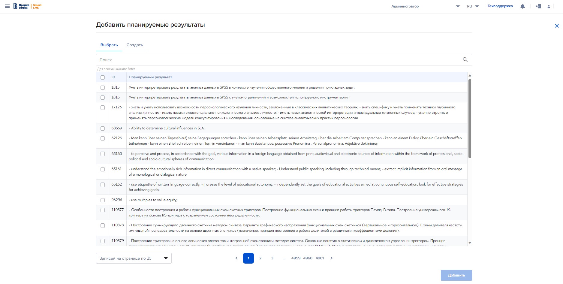блок будет отображать планируемые результаты, которые еще не добавлены в программу.
