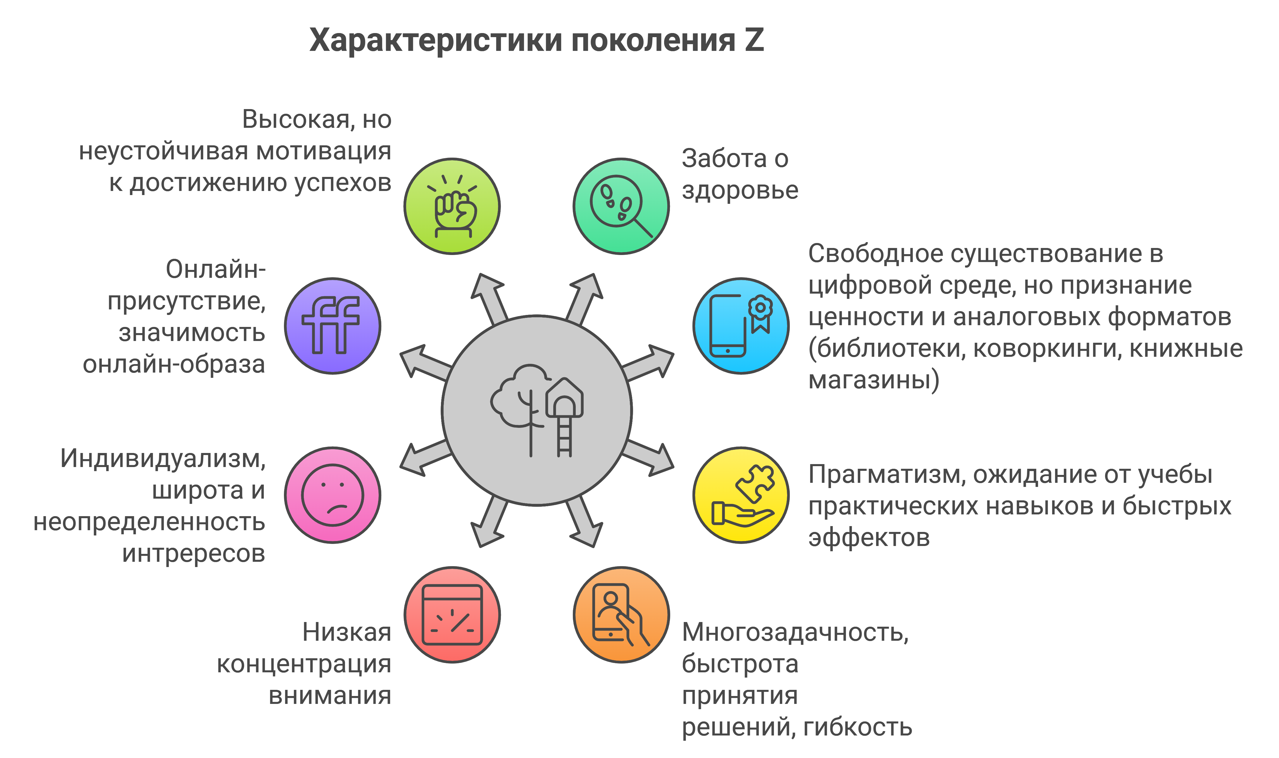 - Самостоятельность. Поколение Z ценит независимость, выбирая для себя наиболее комфортные и эффективные методы обучения, например, онлайн-курсы и самостоятельное обучение.